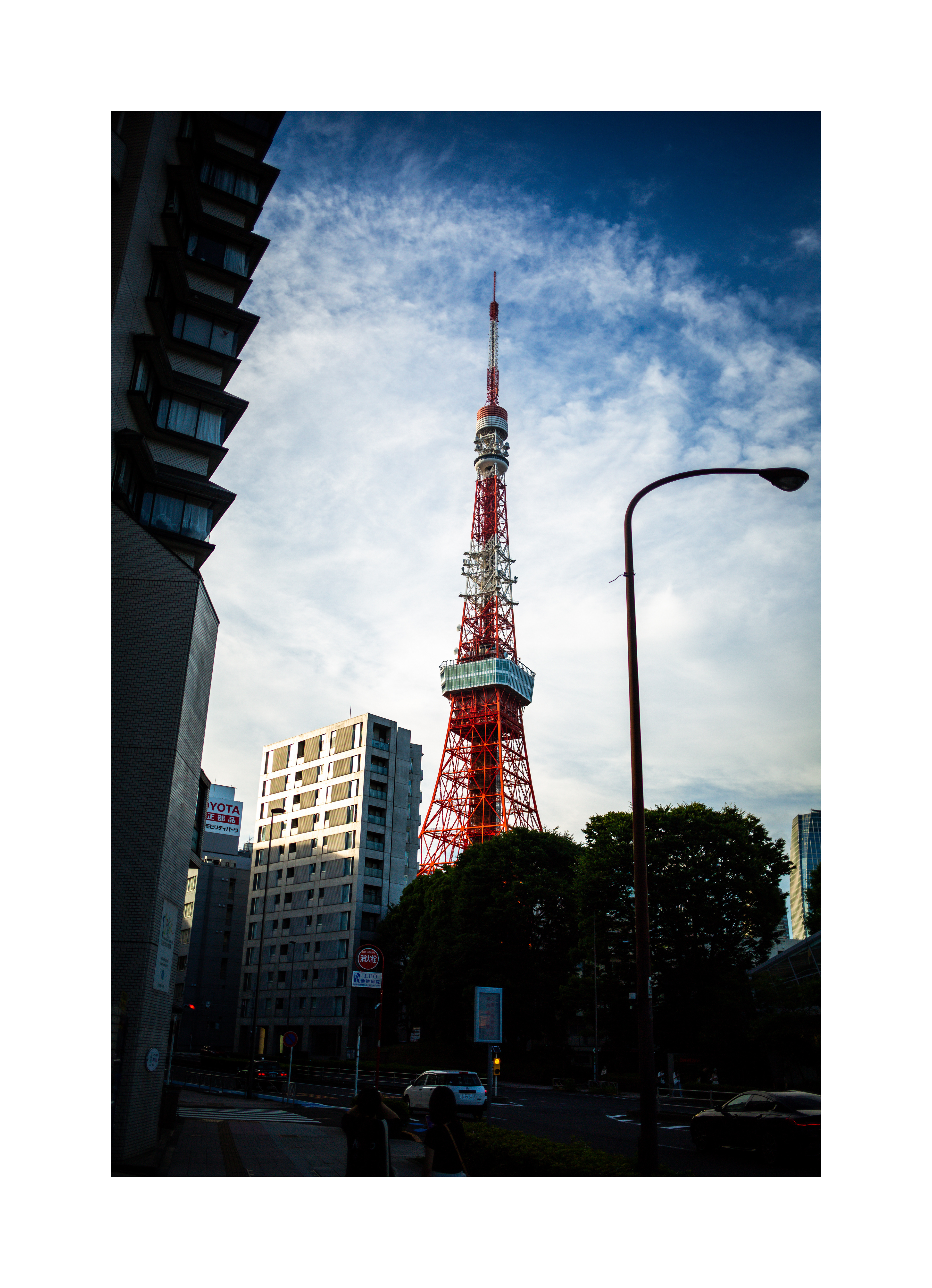 La Tokyo Tower est une tour en treillis d'acier, avec une structure en forme de pyramide